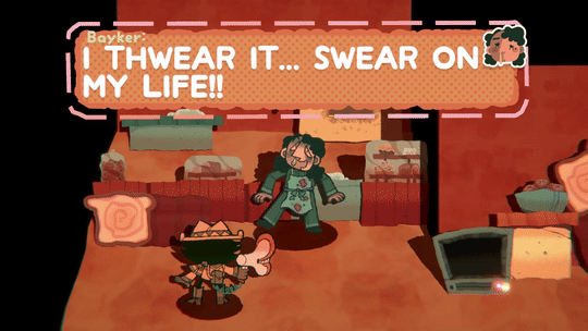 Great God Grove is strictly a narrative game, so you are walking around and talking to a lot of different characters. I think in the demo alone I talked to about twenty different characters. The catch with this game is that the messenger gun that you hold allows you to take items and thought bubbles and hold onto them until you need them. The latter is emphasized the most in the demo. Little dotted lines appear when you can hold the right mouse button and suck up that specific item or thought and when you need to use it you shoot it in their face.