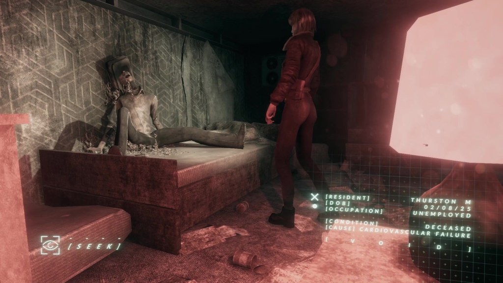 Hollow Body is dark, and gritty and doesn’t falter on telling you what has happened in this ruined city. Lots of rubble and dead bodies to look at with a flashlight that really acts as a flashlight. It illuminates so much but it doesn’t intrude on the defined atmosphere. The monsters that eventually begin to come out from underneath the theoretical floorboards are gross and terrifying.