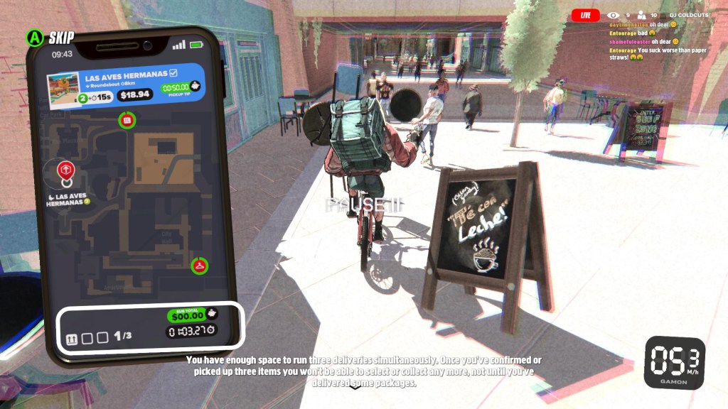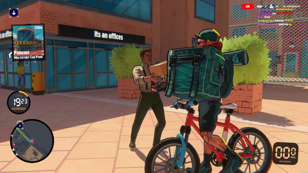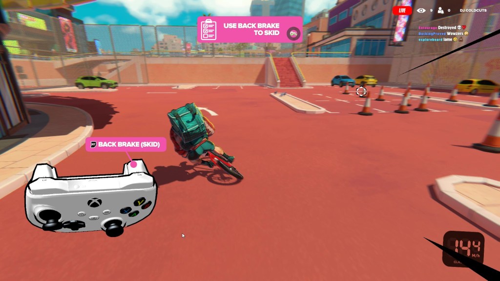 As a professional courier, you can bunny hop, grind rails, and wall ride. You are forced to manually pedal the bike, so playing with a controller is easier on the hands. Keeping track of when to mash the pedal and maintain enough speed to take corners and jumps at the appropriate time to shred seconds off a major delivery feels great.