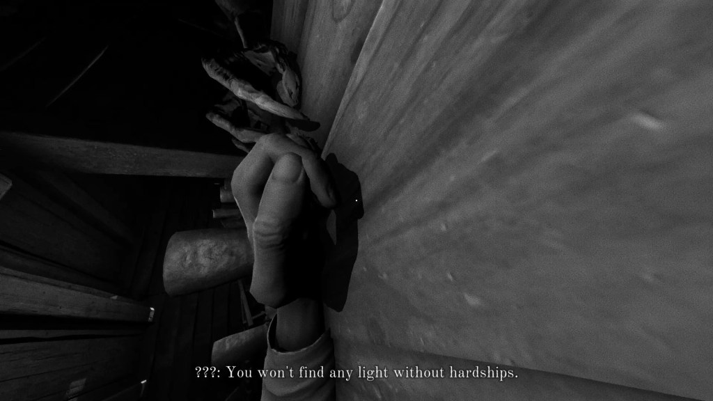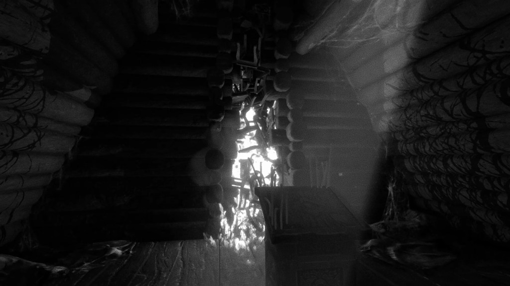The game is dark and the greyscale only makes differentiating spooky stuff from literally nothing even more difficult. The game looks really good in the dark and when the matches illuminate the space. The art direction amplifies the spookiness and creates a unique atmosphere that you don’t often in spooky games.