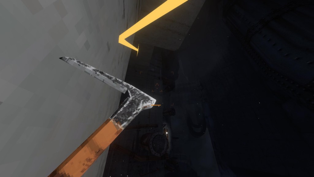 Lorn’s Lure looks like a PS1 game with all of these smooth and blocky textures. The game is also pretty gray and dark, which is fair because you are in a little metal hole in the ground. Lorn’s Lure may be dark, but it is never frustratingly dark where I have no idea where to go, and dropping isn’t a gambit. There are visual cues to show you where to go to advance. The dark, coupled with the spooky sounds, make for a really tense platforming experience.