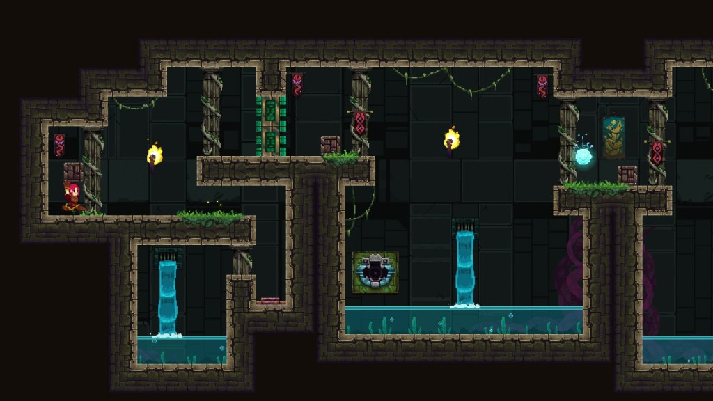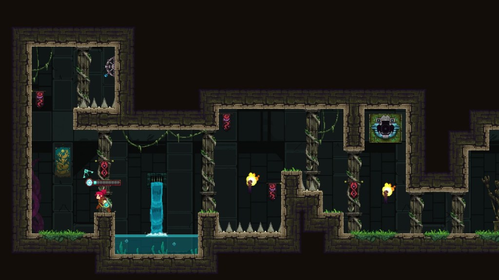 Back to the good old pixel graphics. Forgotten Fragments has quite a nice charm with cute, chubby-faced characters and absolutely gorgeous environments that are accentuated by fanning flames on torches and little fireflies that hover over small patches of moss and water constantly flowing in the background.