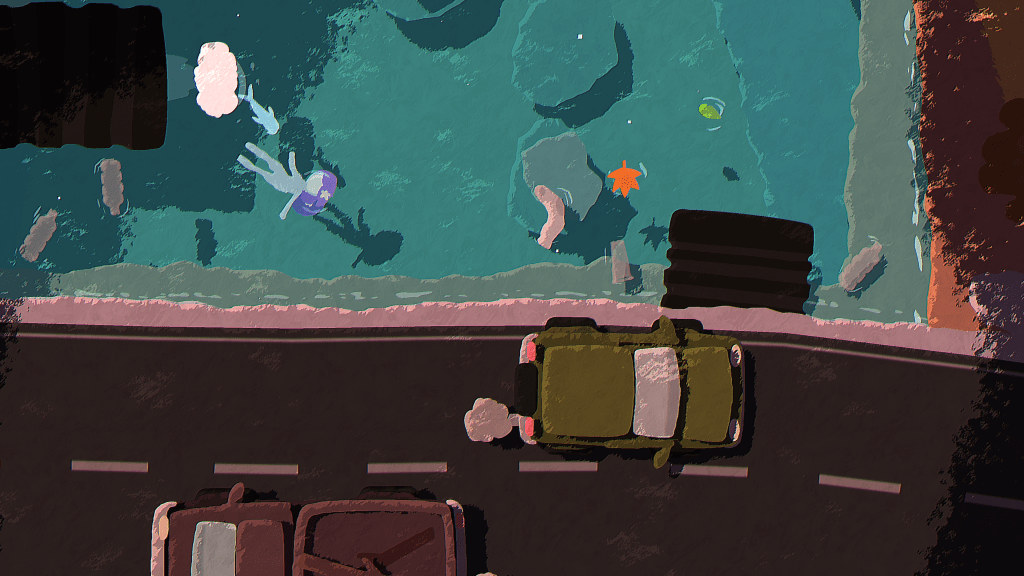 Naiad is in a world of its own, a master class in how to make a beautiful-looking video game. The top-down perspective gives the player a full glimpse of Naiad’s world. The environment looks like it was cut from construction paper. The water is crystal clear with a matte blue on the river floor to give the bubbles left in your wake as you expertly swim through *chef’s kiss*. The pastel colors of Naiad‘s world are nothing short of magical.