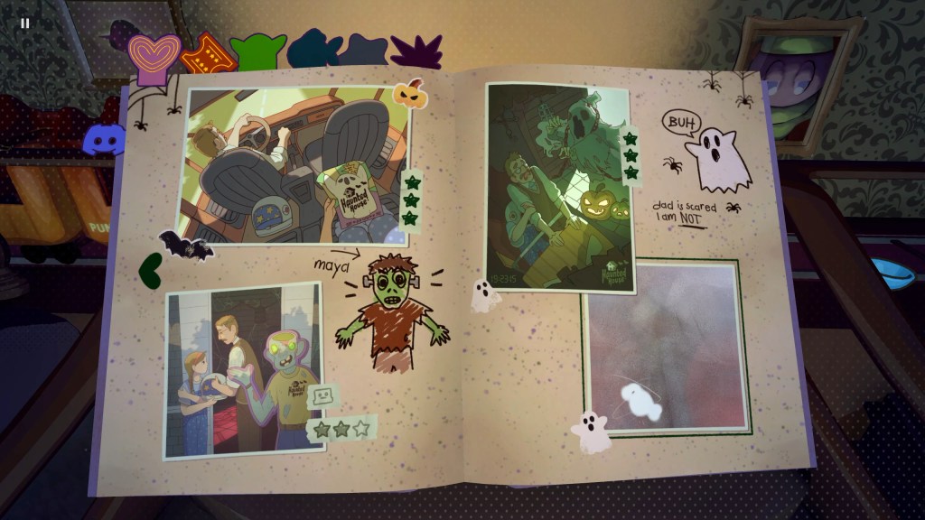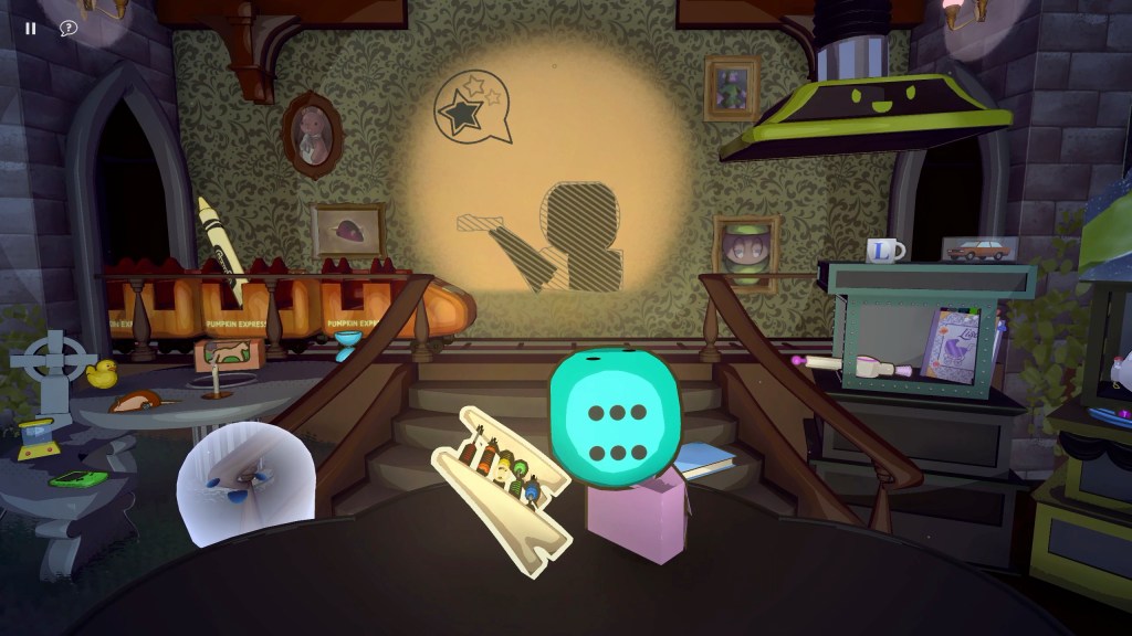 Projected Dreams has got the cozy vibes down pat. The visuals are clean and colorful. Lisa’s room is detailed, and as you progress, it gains more detail that gives it a lived-in feel. I also really, really like the design of things to do outside of the puzzles, like pressing random buttons, messing with pumpkins, pressing the rollercoaster car constantly, all while I am puzzling.