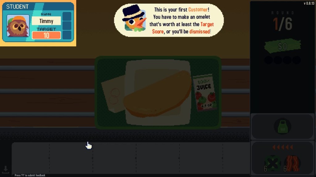 The last chef couldn’t make it in the apparent wasteland of serving omelets to Middlesville Central Cafeteria, so to keep your job, you must satiate the masses and be judged by Principal Clucker.