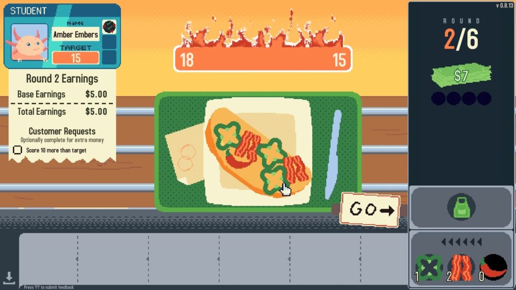 Placing ingredients is also really oddly satisfying because everything is seemingly on ice. Place a piece of bacon, and it’ll slide a little bit. Then you’ll have to fit a green pepper next to two pieces of bacon to get the extra points. Any more movement and the points can be absolutely ruined.