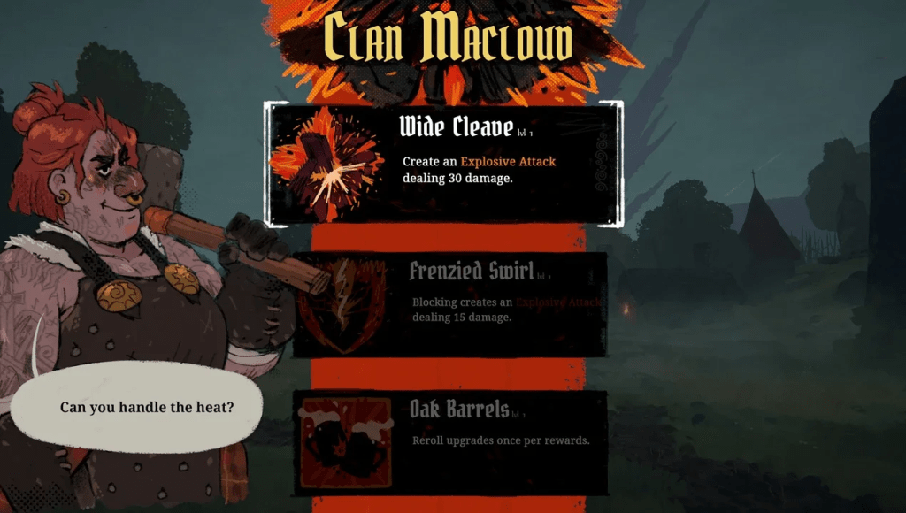 Combat encounters are great. It opens up with the army running into battle, and the player takes over. The leader is able to cleave through smaller enemy ranks without issue, building up a special meter. Reinforcements usually drop in, accompanied by heavy soldiers close behind, who pose the real threat to the players as they hit harder and faster than the regular grunts. After completing an area, the player is rewarded with an ability that enhances an attack, like dealing more damage, gaining a dodge buff, or healing after each battle.